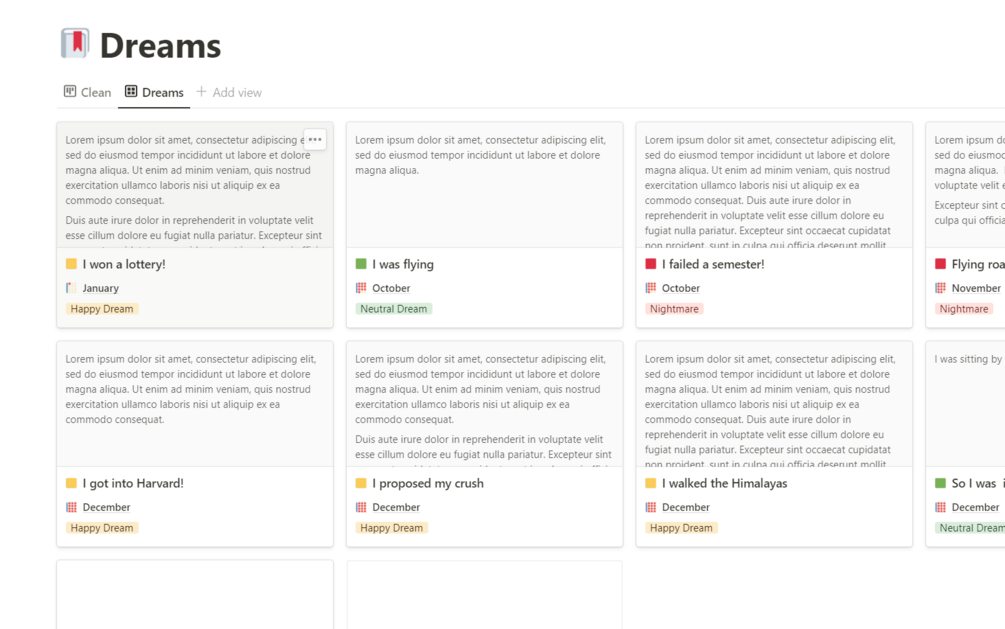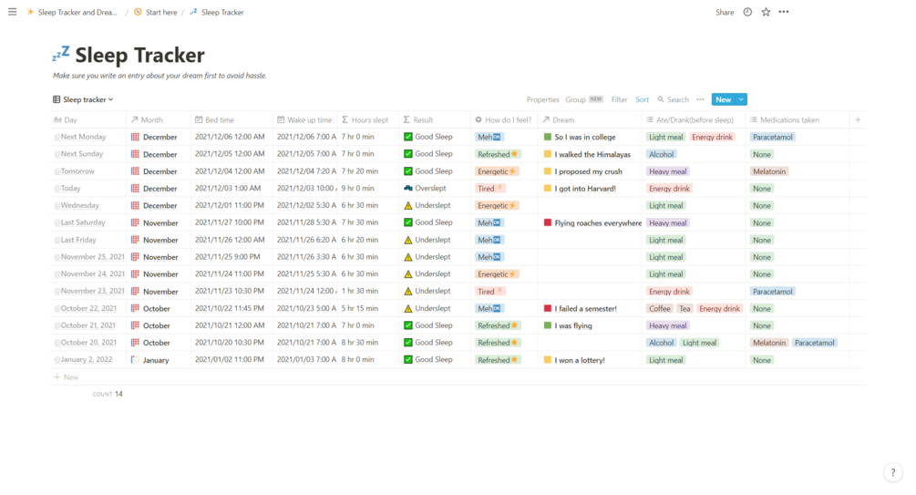 Duplicate the template to your workspace and start logging your sleep and dreams!